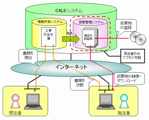 ※CALSシステムとは、工事施工・業務履行中に利用する「情報共有システム」と維持管理段階や工事発注段階で利用する「保管管理システム」の2つを指します。