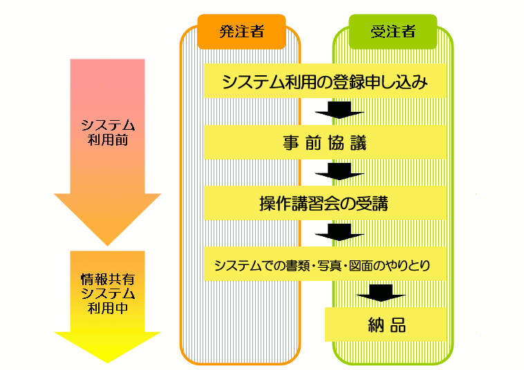 ここでは、システムの利用前からシステム利用終了までの流れをご説明します。