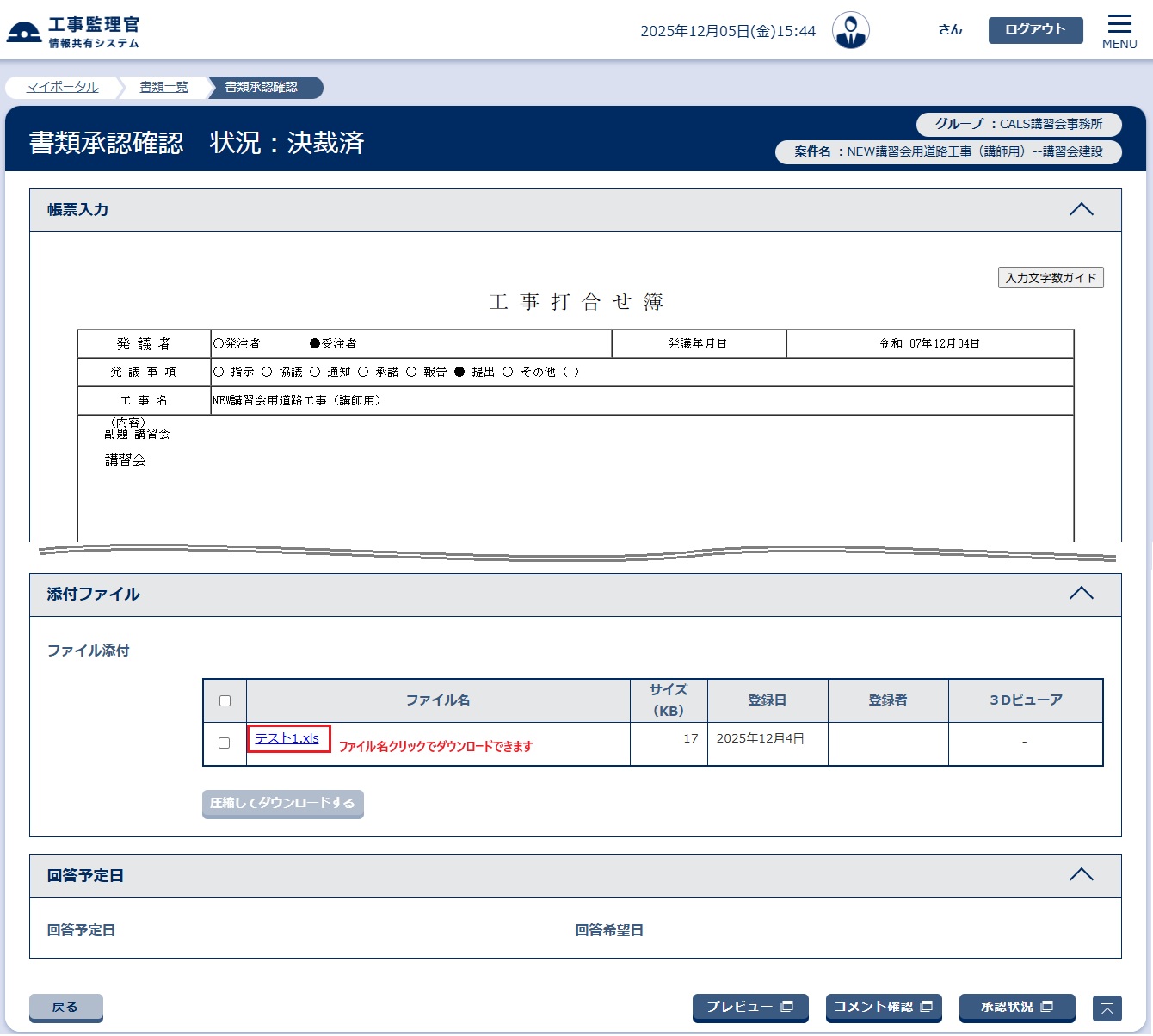 書類一覧から書類を開き、画面下部【添付ファイル】の項目から添付ファイルのダウンロードが可能です。